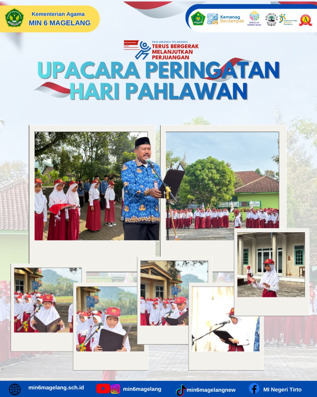 Dengan penuh khidmat, civitas akademika MIN 6 Magelang melaksanakan upacara peringatan Hari Pahlawan Nasional di halaman madrasah. Tahun ini, peringatan mengusung tema "Pahlawan Teladanku: Terus Bergerak Melanjutkan Perjuangan."