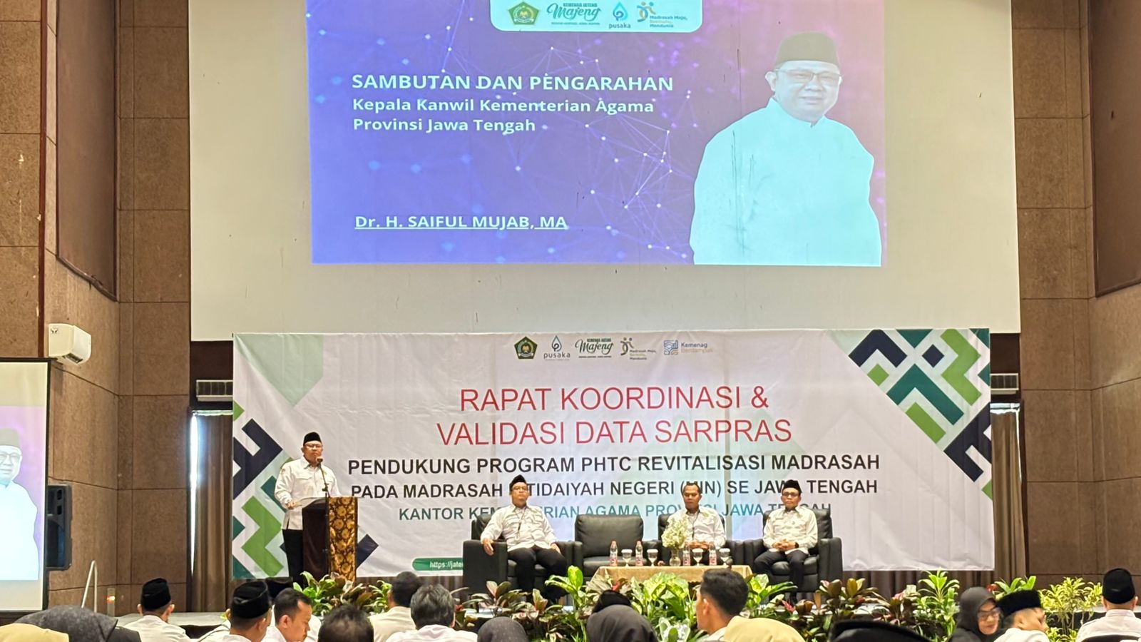 Acara dibuka secara resmi oleh Kepala Kantor Wilayah Kementerian Agama Provinsi Jawa Tengah, Bapak Dr. H. Saiful Mujab, M.A. Dalam sambutannya, beliau menyampaikan bahwa kegiatan ini merupakan bagian penting dari upaya pemerintah dalam memperkuat tata kelola madrasah melalui program revitalisasi yang berfokus pada peningkatan kualitas sarana dan prasarana pendidikan. Beliau menegaskan bahwa data yang valid dan akurat menjadi dasar utama dalam perencanaan pembangunan madrasah yang berkelanjutan.